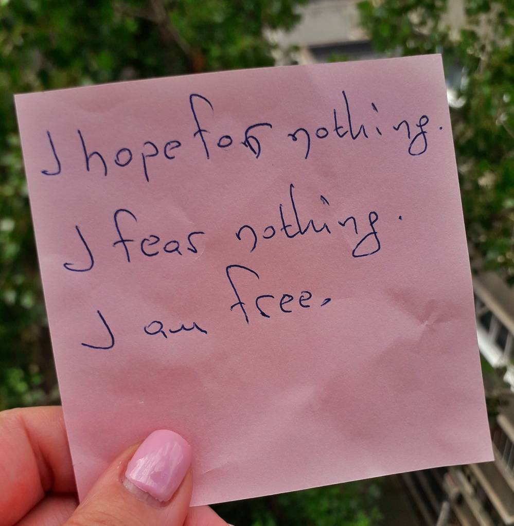 (ελπίζω για τίποτα δεν φοβάμαι τίποτα δεν είμαι ελεύθερος)